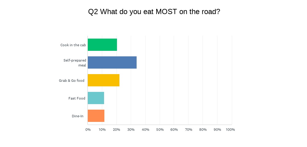 If you are cooking raw meat in your stove, make sure you plan for 5-6 hours of cook time while you are driving. If you are heating up a meal you prepped ahead of time, plan for 30min – 1 hour. The RoadPro stove is perfect for cooking anything from soups and stews to casseroles and lean meat. In fact, a recent survey from RoadPro found that 34% of truck drivers prep their meals ahead of time, 20% cook in the cab, 22% choose grab-and-go food, and 12% eat fast food or dine in.